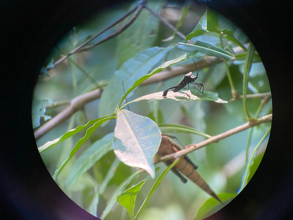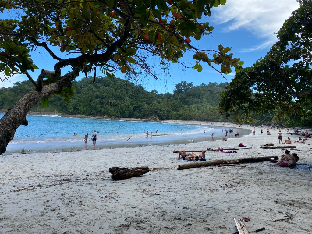 Our second sloth and our first in the National Park! This is a three-toed sloth. Its face is a little different than the two-toed sloth in that is has a black mask through the eyes. Three-toed sloths are mainly active at night but can be seen feeding during the day. They cannot support their weight on the ground, but they can swim. They come down to the ground once a week to poop in a hole they dig with their tails. They have green tinged fur caused by algae that live in the hollow tube structure of the fur. Sloth moths(!) live in the fur and keep algae growth in check by eating it. (I can’t get over saying sloth moths….just the best!)