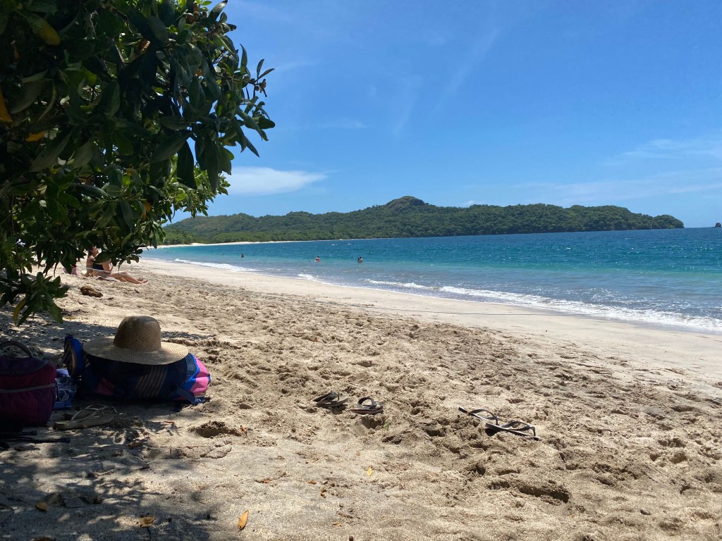 The water at Playa Conchal is calm and clear. To get here you have to walk for twenty minutes down another beach and then climb over a rocky point. The beach here is made entirely of small smooth shells rather than sand.