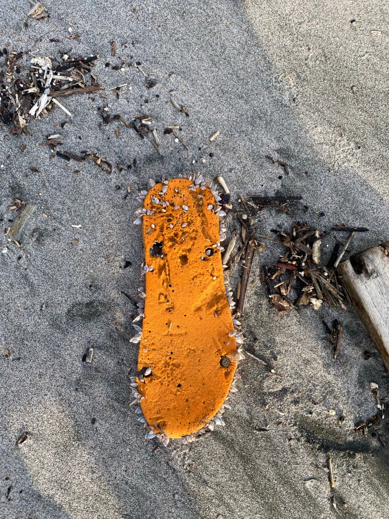 We’ve had some big swells lately and Tess and I have noticed the increase in trash and debris that is washing up with the waves. We know this is a problem worldwide, on popular beaches and very remote ones, but it is still disheartening. No matter how much we pick up there is more to come, threatening the health of the ocean and the creatures that live there. From the macro to the micro, the amount of trash we’ve seen on just our home beach is sobering. And some of it has been cruising around for awhile already, as evidenced by the flip flop above encrusted with sea life. We don’t have the answers, but are inspired to keep looking for them and doing what we can.