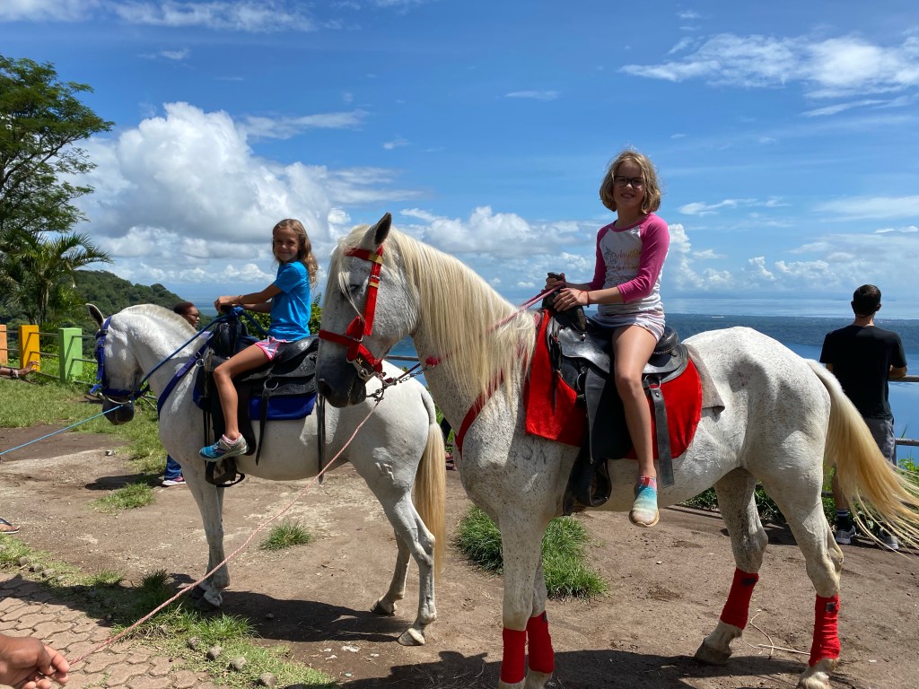 There was a lot going on at this lookout point although you wouldn’t know if from this picture. There were about ten horses lined up and all of the men were scrambling to ask us if we wanted a ride. Even though I kept saying no, the girls ended up on two of them for a photo op. I am sure they were looking for money or a tip for this photo, but since we were so pressured into it I did not oblige in this instance.