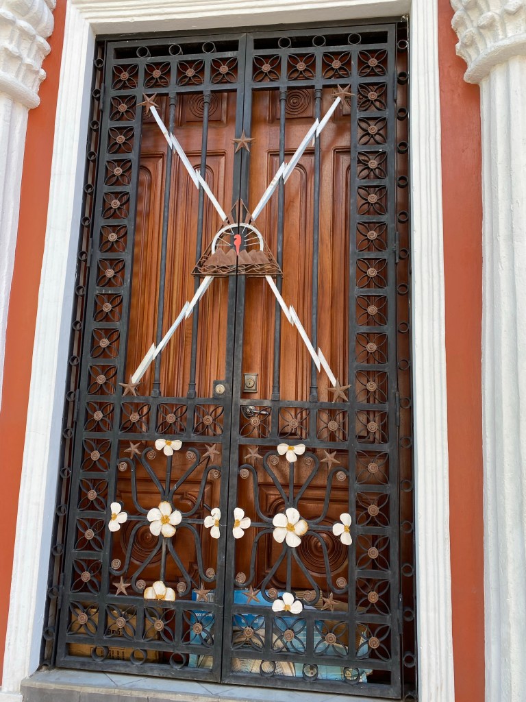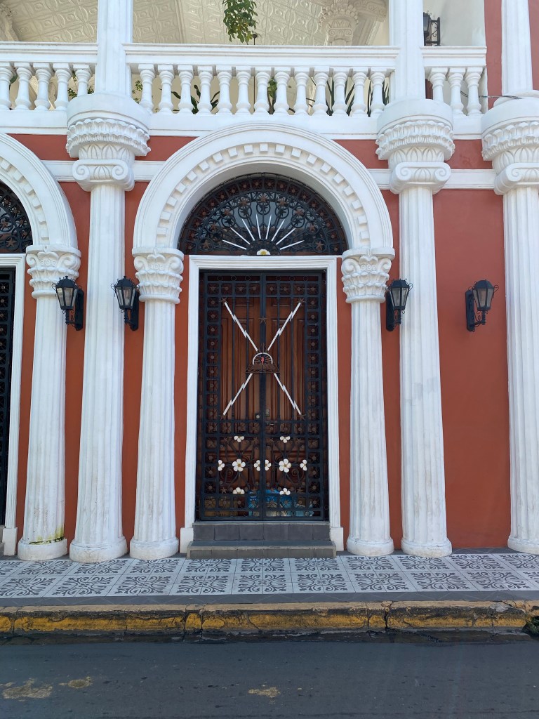 I liked this door. The same volcano imagery is depicted on the Nicaraguan flag.