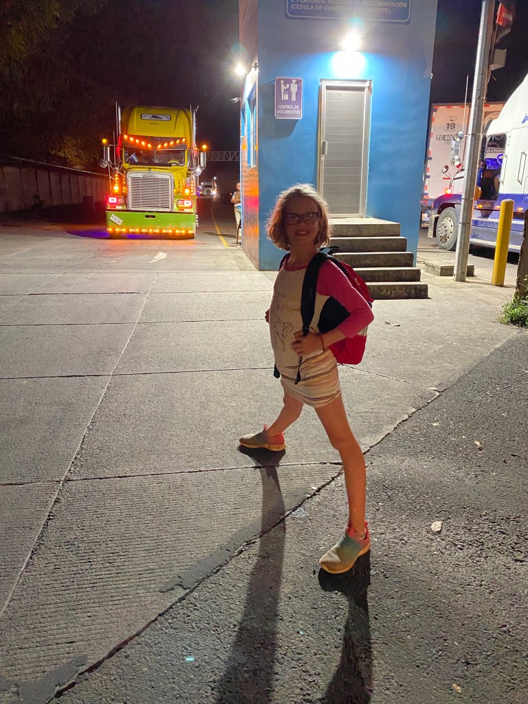 We were also thrown another twist in that school has been closed all week because the Ministry of Health here declared an emergency. There have been too many children under four coming into the hospitals with severe non-Covid respiratory illness so they want kids to stay home from school to try to let this wave of illness pass. So, even though we are about two weeks early on our first 90-day timeline, we decided to take advantage of the girls time off and make the run. We are making it easy on ourselves this first time and are going with a tour group so we also get to see some sights. Our day began at 4am when we were picked up in Flamingo. We then met up with the tour van in Huacas for the two-hour drive to the Peñas Blancas border.