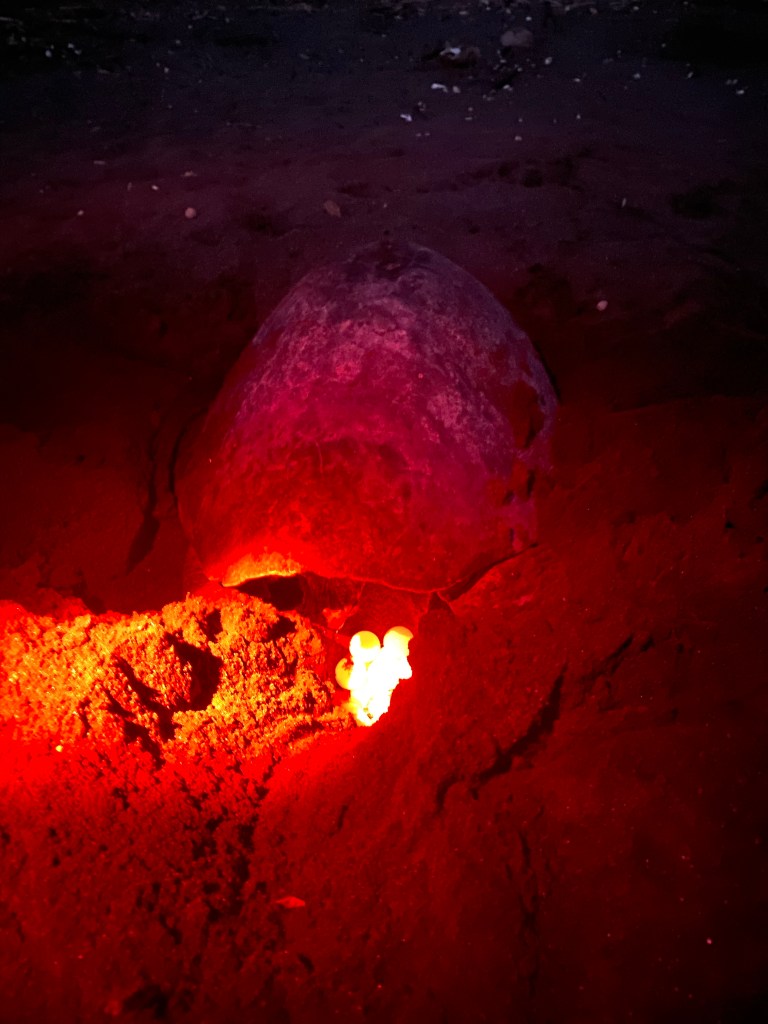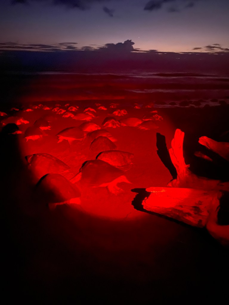 I realized that all of the turtles were coming to the beach to lay their eggs, but I didn’t realize we would get to see the process so up close and personal. Truly amazing. They can lay 80-120 eggs while on the beach. The whole process of emerging from the sea, laying eggs and returning to the ocean only takes about an hour. Incredible! The eggs hatch about 45-55 days later.
