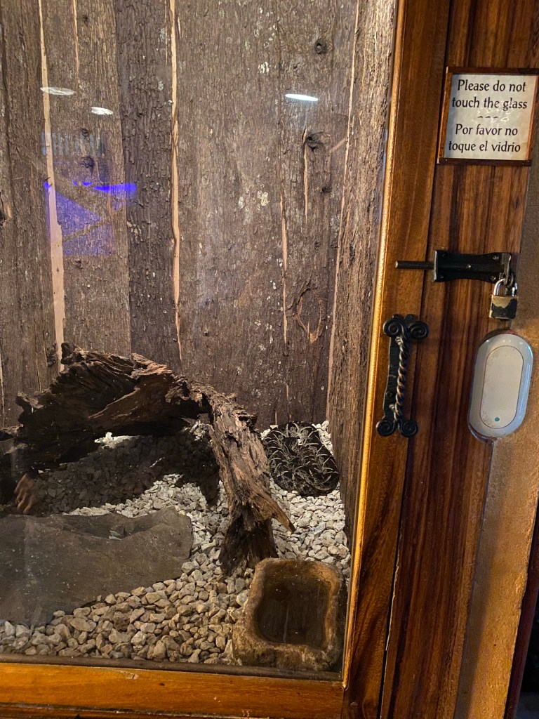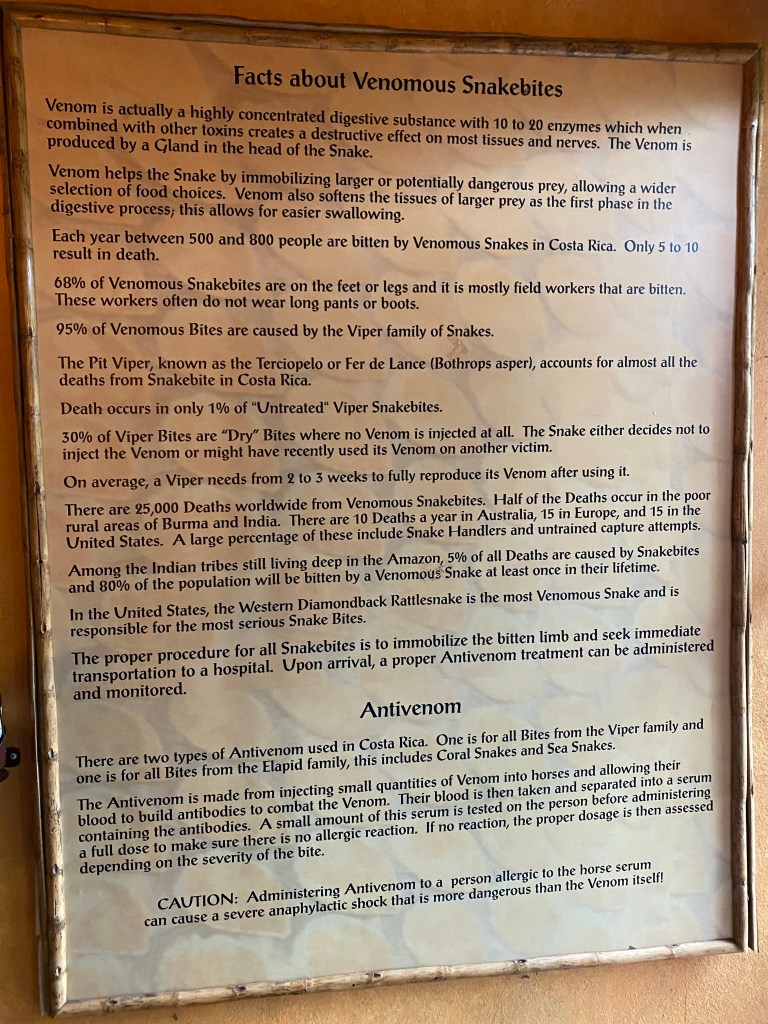 The big baddie, the Fer de Lance. This is one of the most most venomous snakes in Costa Rica and it is the most aggressive. It also likes to hang out near fallen logs, trees, and other common places people might step in the forest. I hope never to see one of these in the wild. The bushmaster is actually more venomous (because it has a neurotoxin and a hemotoxin in its venom) but it is shy and likes to hang out deep in the forest and is rarely seen. I liked the old school looking cages here that locked from the outside.